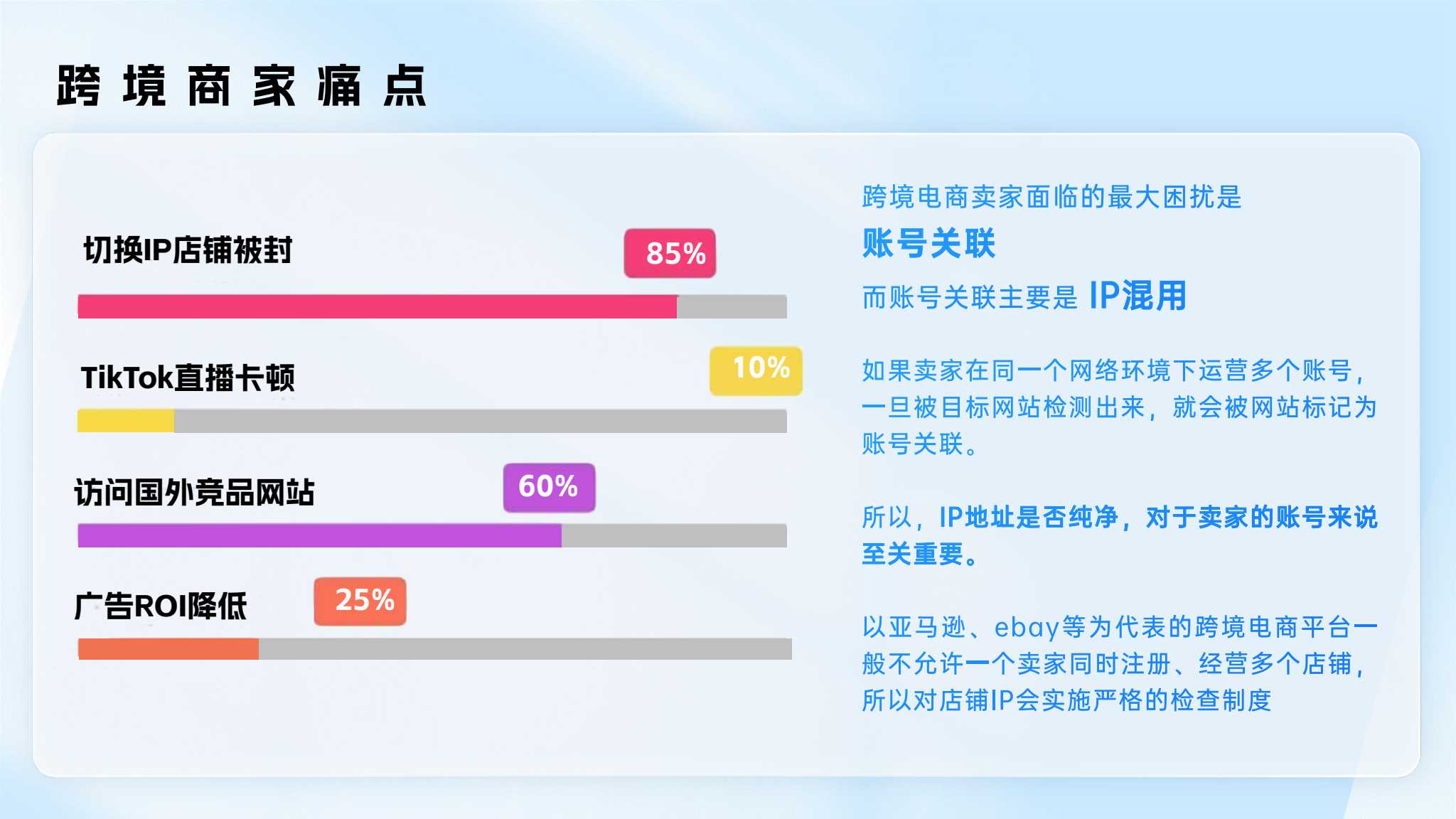 跨境電商行業專線方案:各電商賬號平臺防關聯解決方案提供純凈原生IP,保證賬號安全穩定